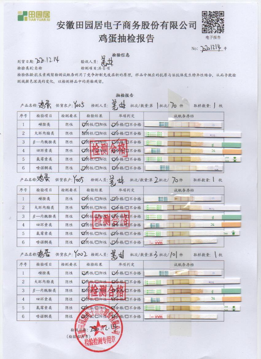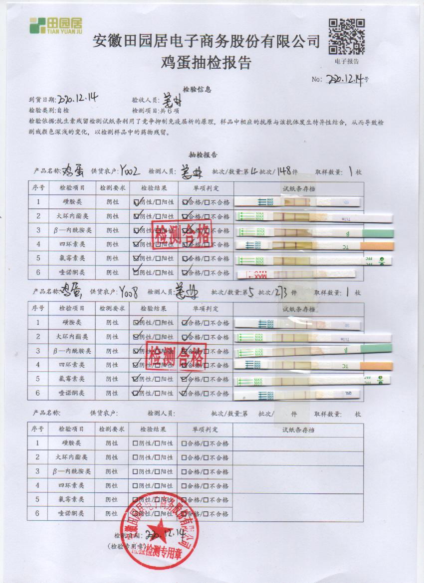 2020年12月14日鲜鸡蛋检测报告