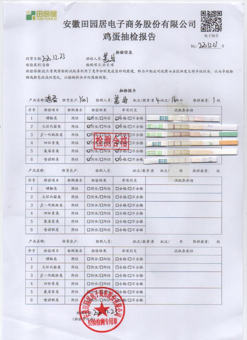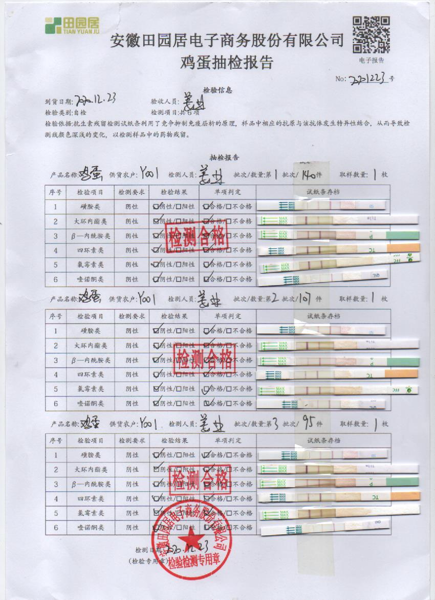 2020年12月23日鲜鸡蛋检测报告