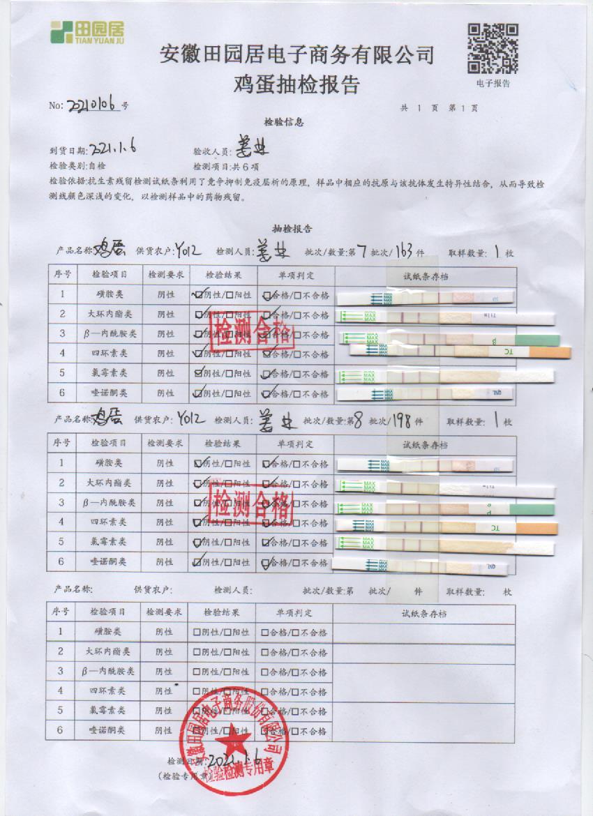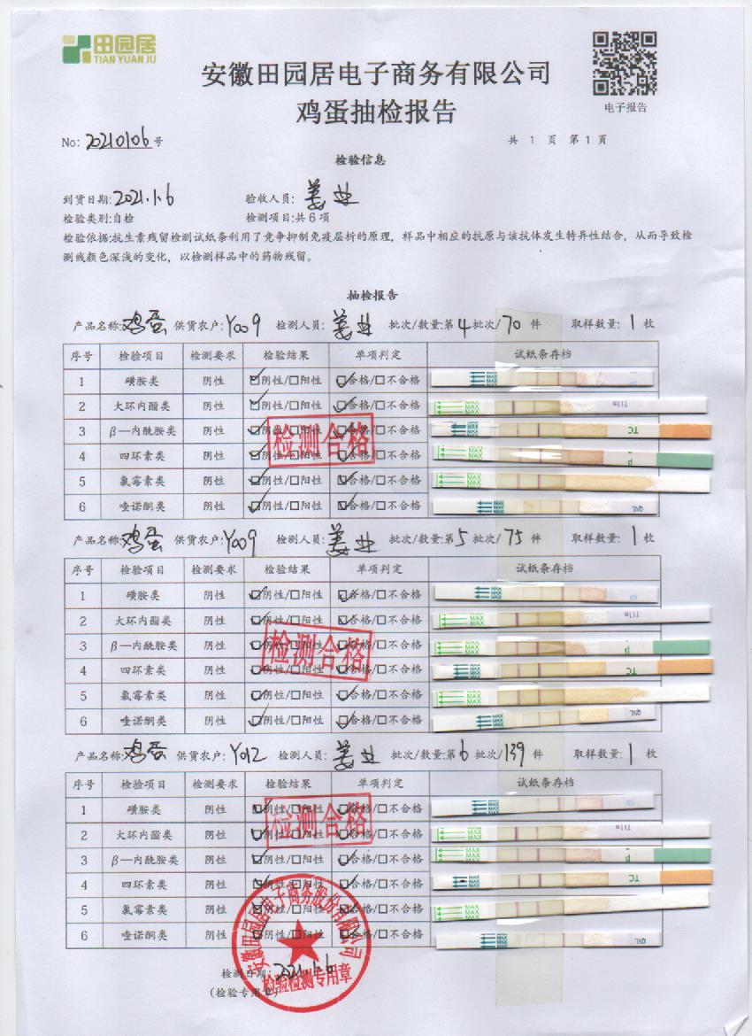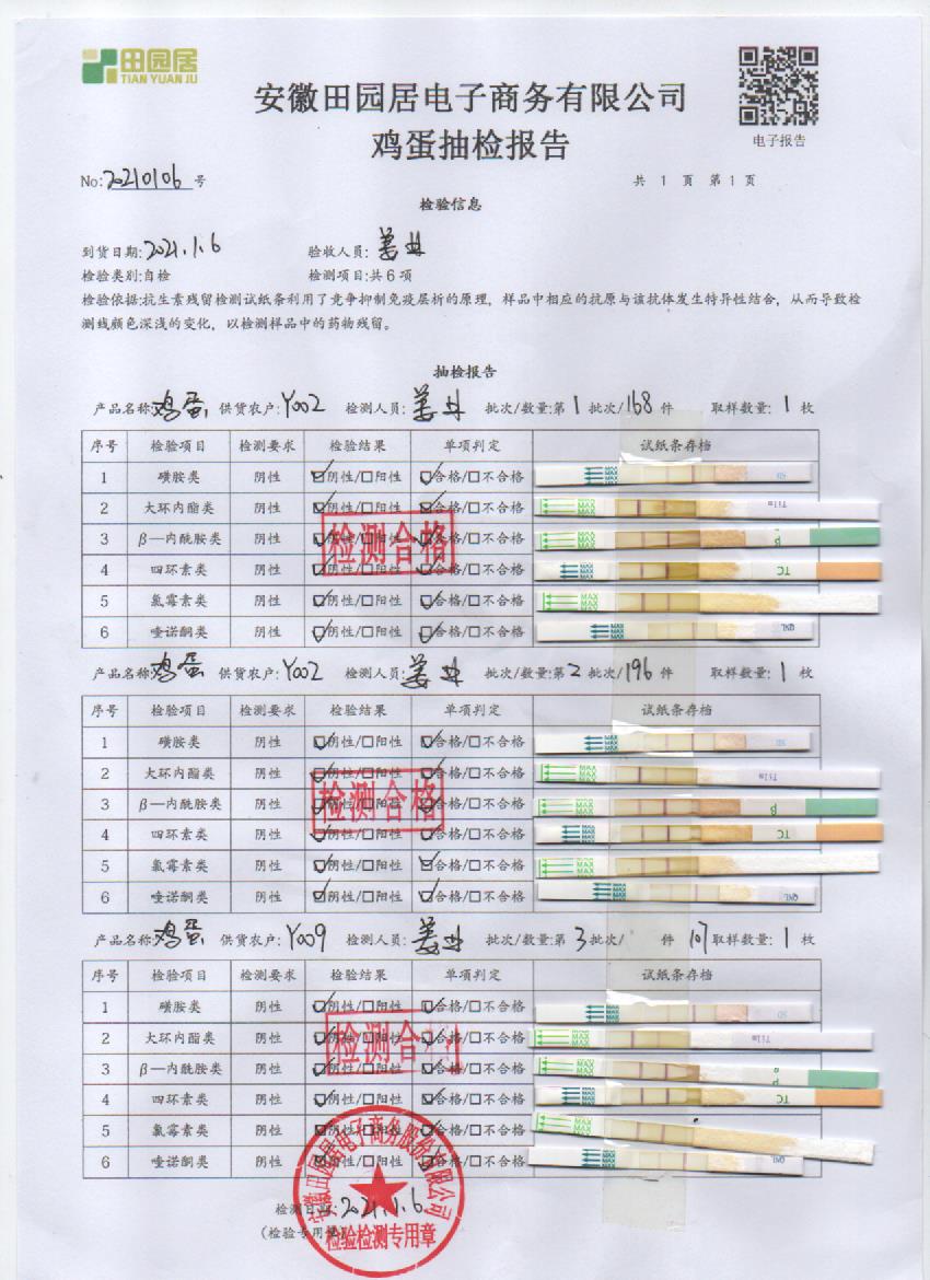 2021年1月6日鲜鸡蛋检测报告
