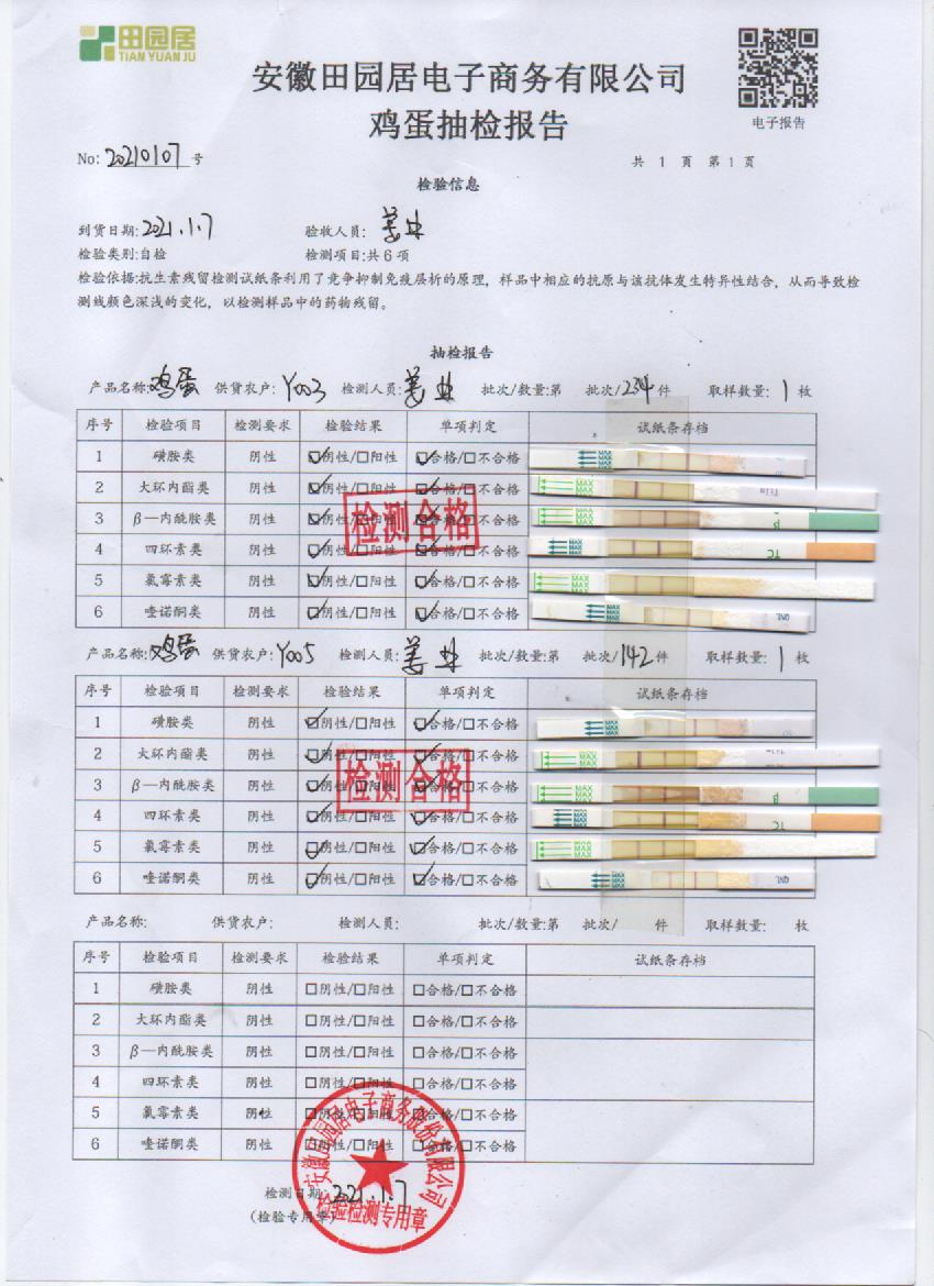 2021年1月7日鲜鸡蛋检测报告