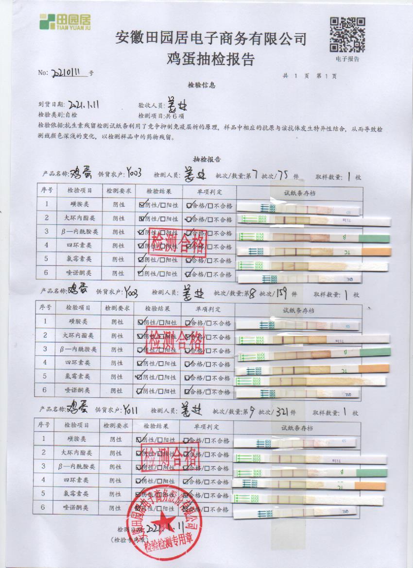 2021年1月11日鲜鸡蛋检测报告