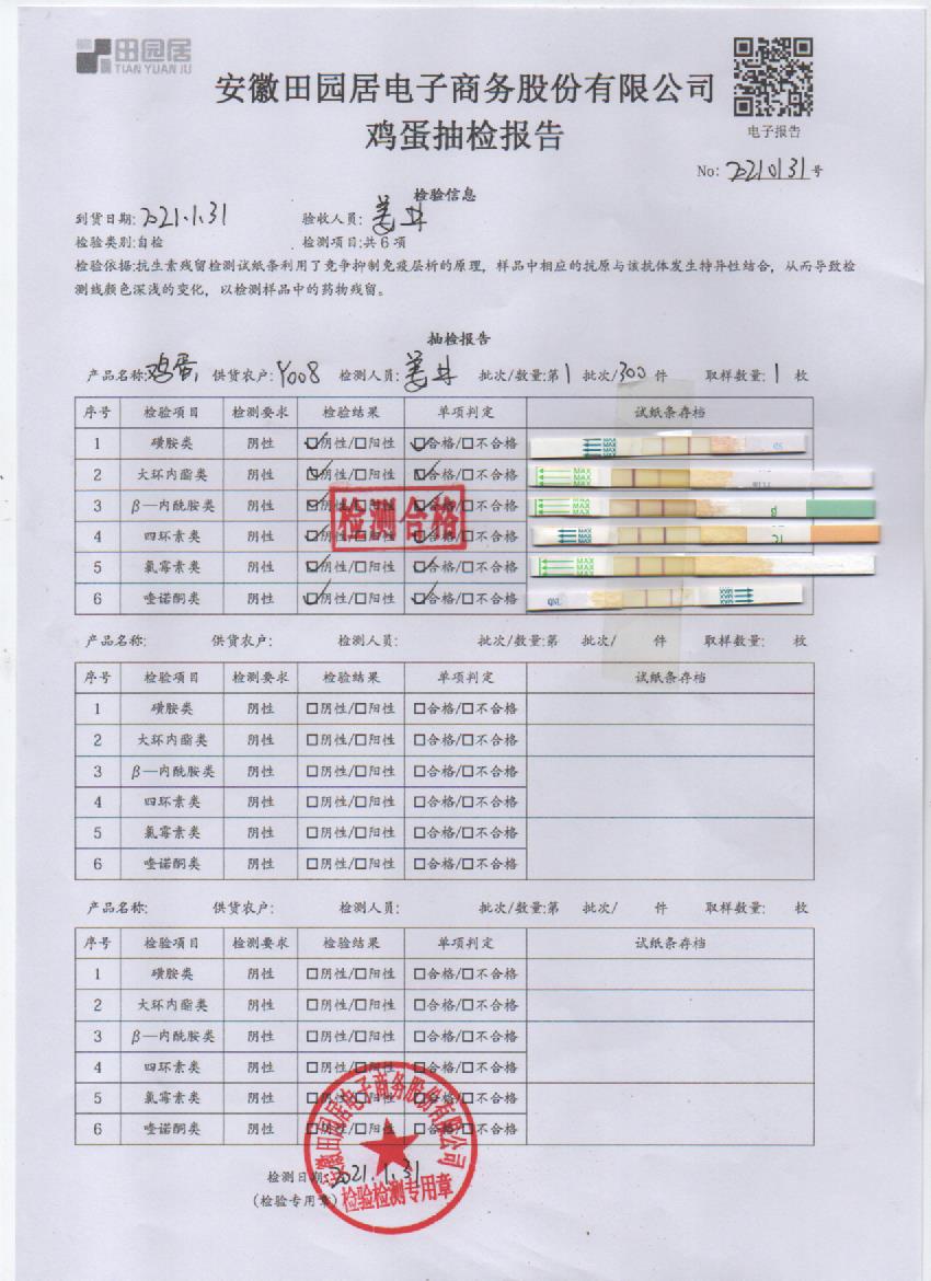 2021年1月31日鲜鸡蛋检测报告