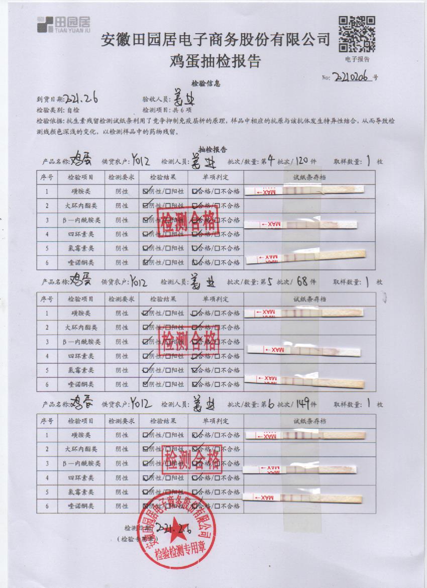 2021年2月6日鲜鸡蛋检测报告