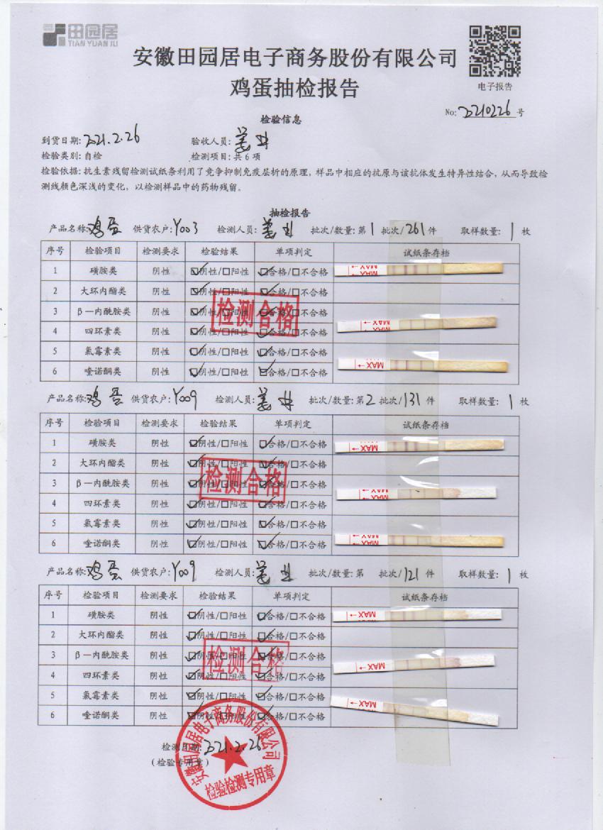 2021年2月26日鲜鸡蛋检测报告