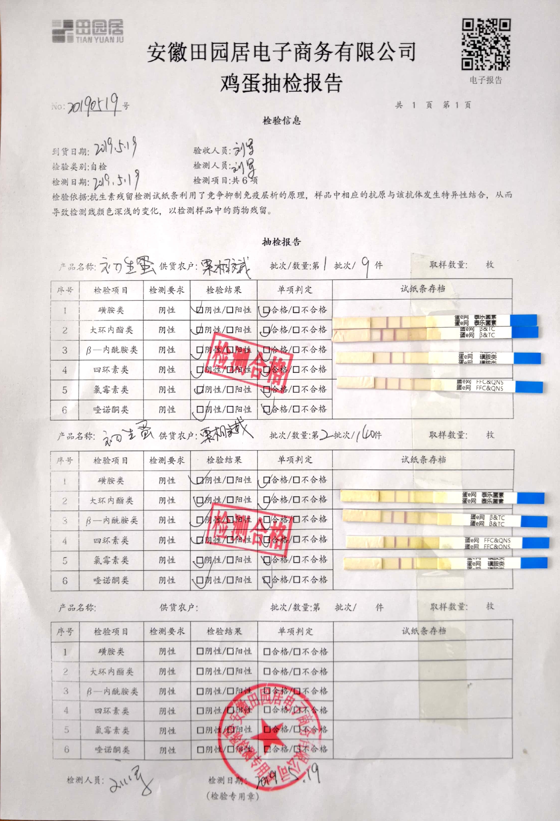 2019年5月19日鸡蛋自检报告