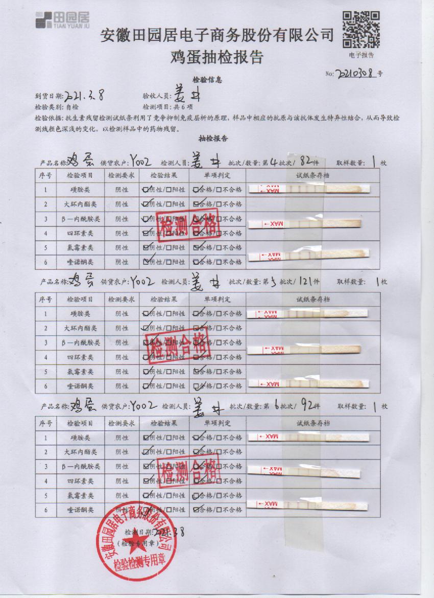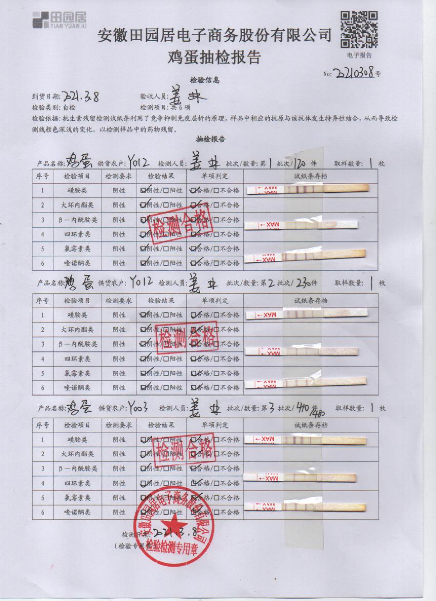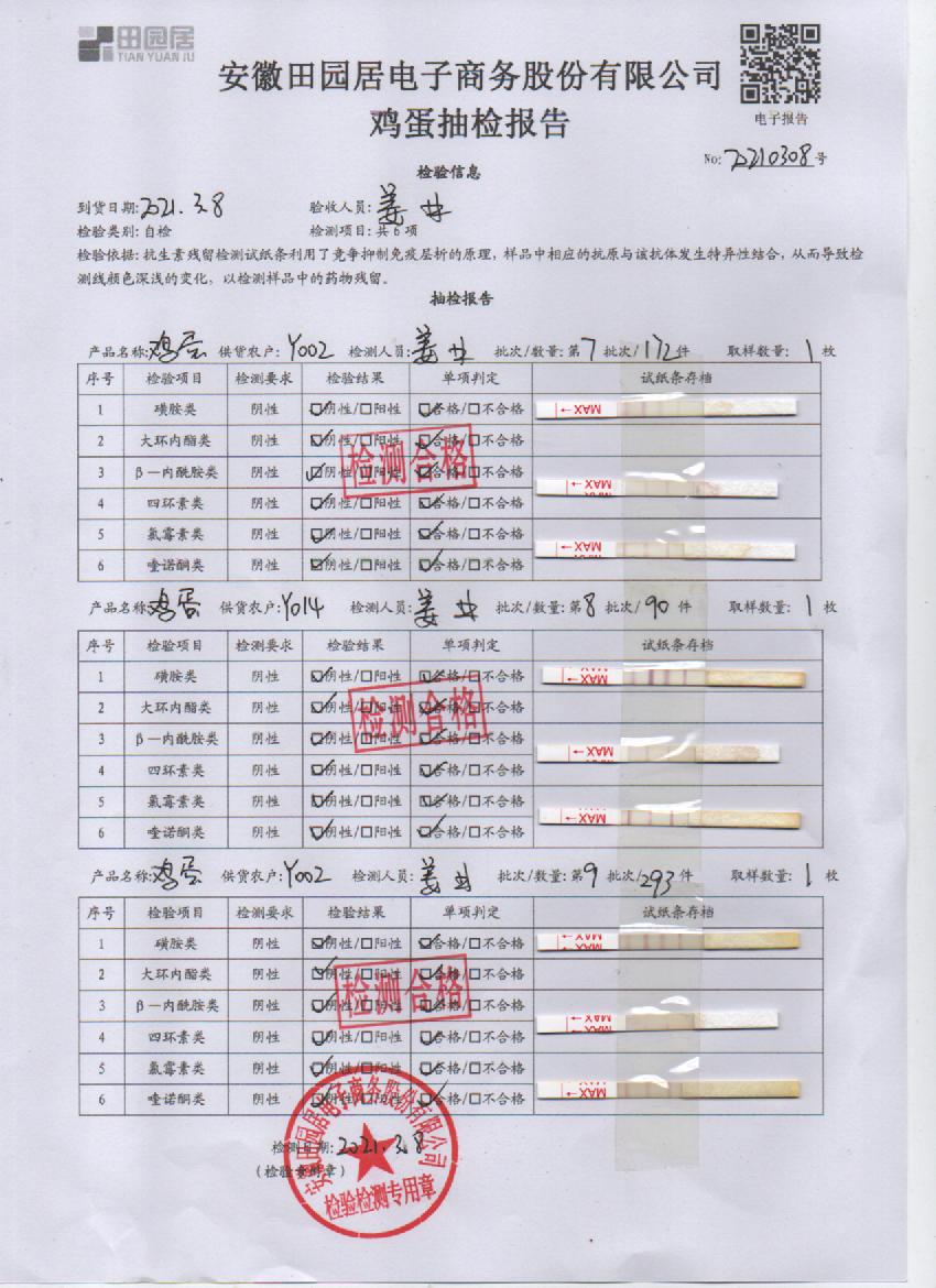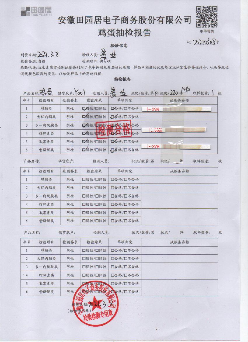2021年3月8日鲜鸡蛋检测报告