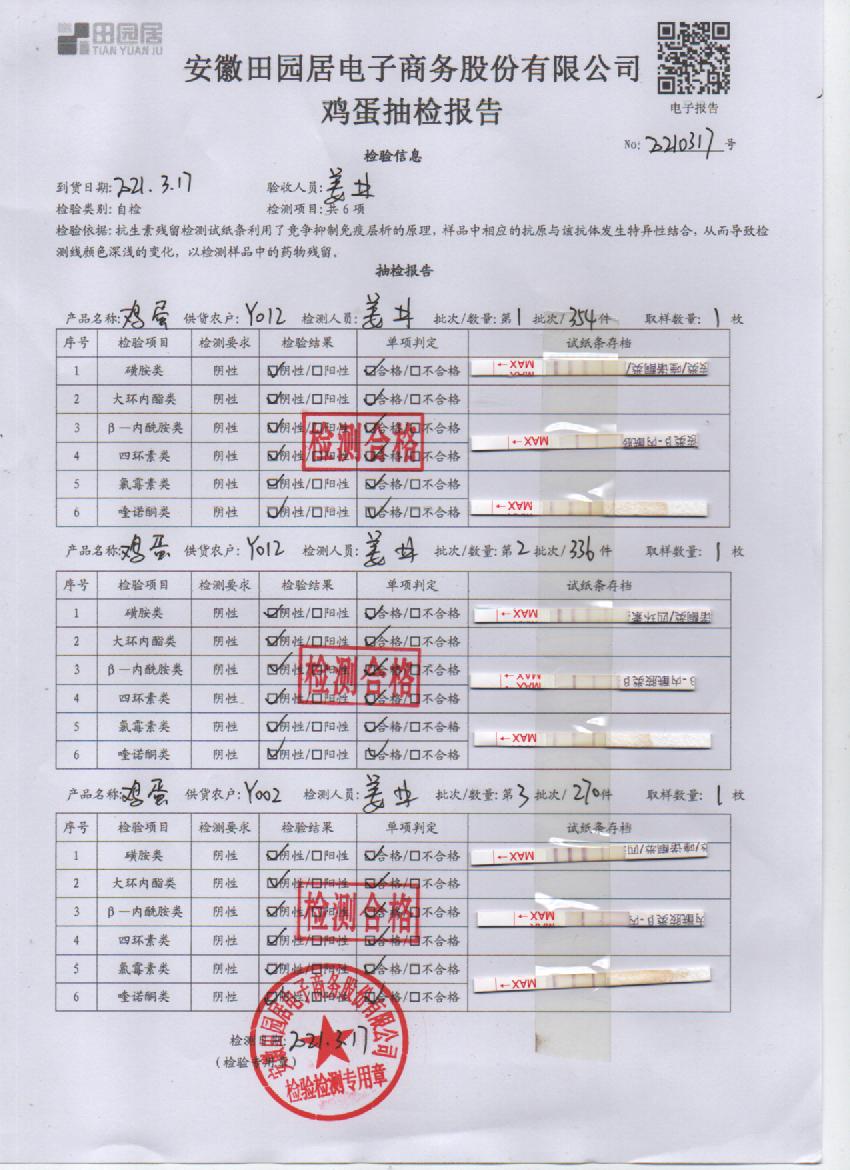 2021年3月17日鲜鸡蛋检测报告