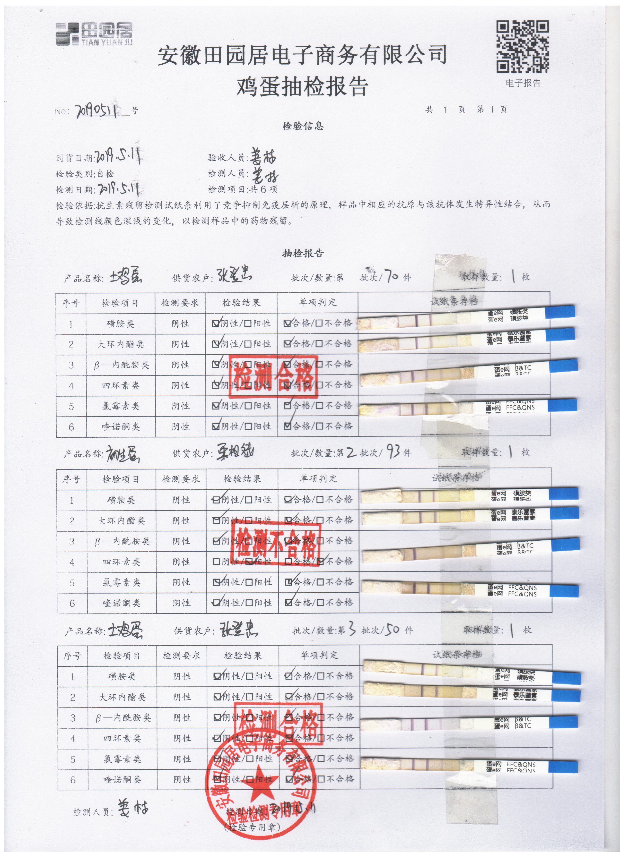 2019年5月11日鸡蛋自检报告