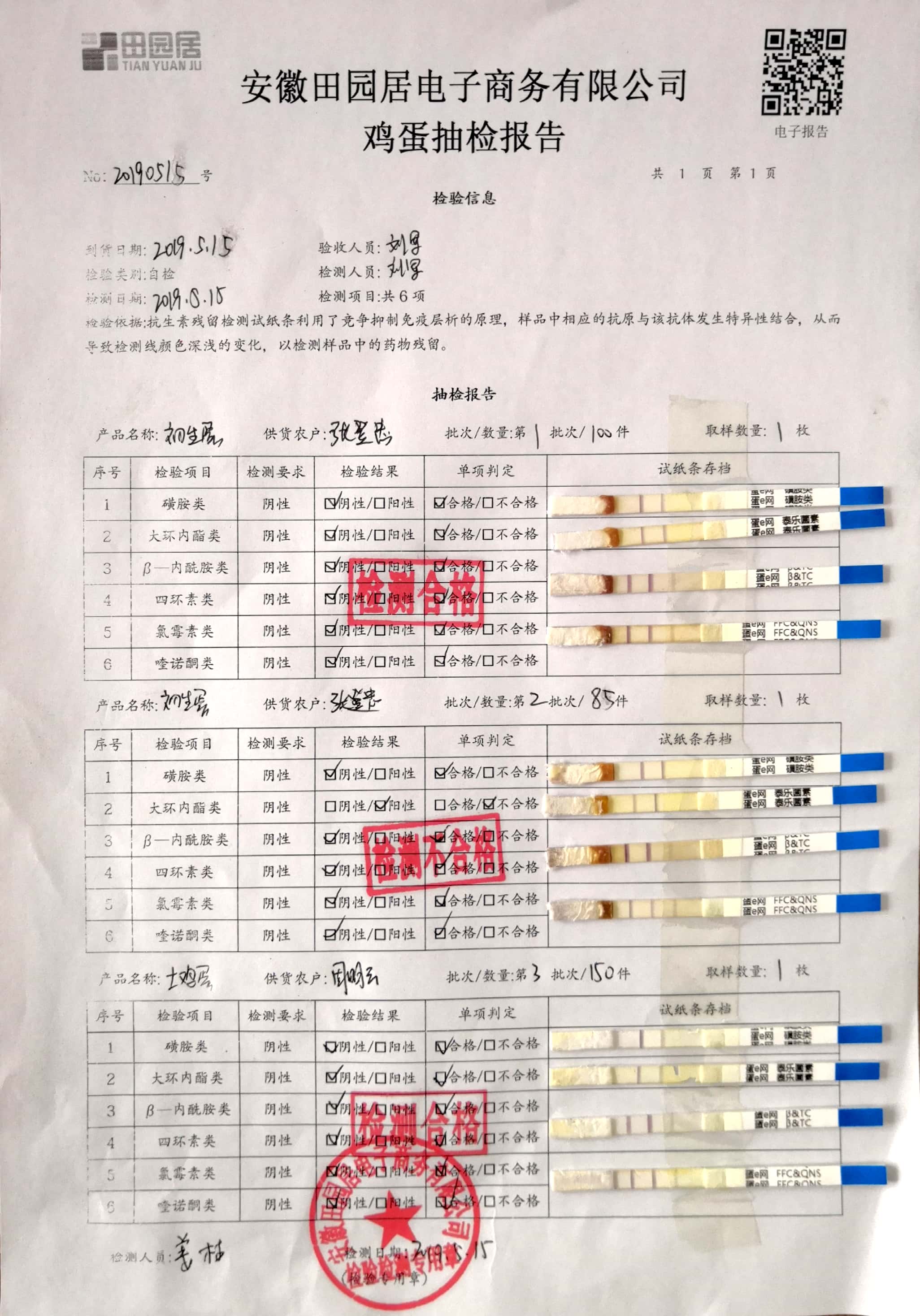 2019年5月15日鸡蛋自检报告