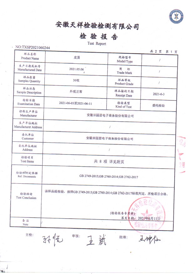 2021.6月皮蛋检测报告