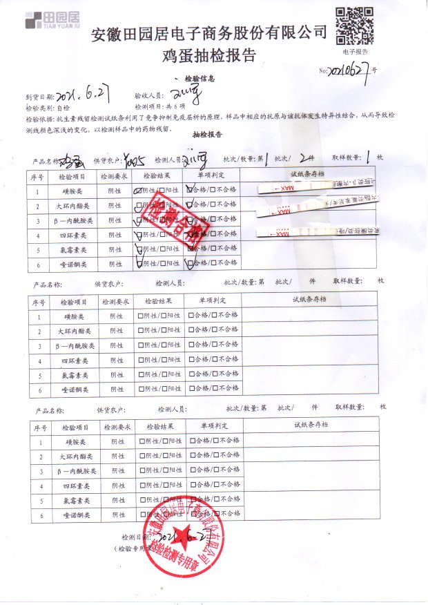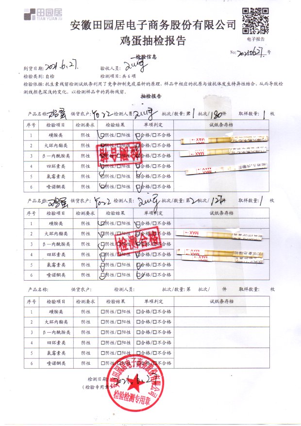 2021年6月27日鲜鸡蛋检测报告