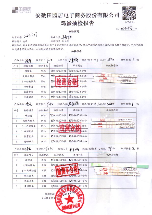 2021年6月21日鲜鸡蛋检测报告