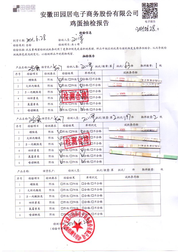 2021年6月28日鲜鸡蛋检测报告