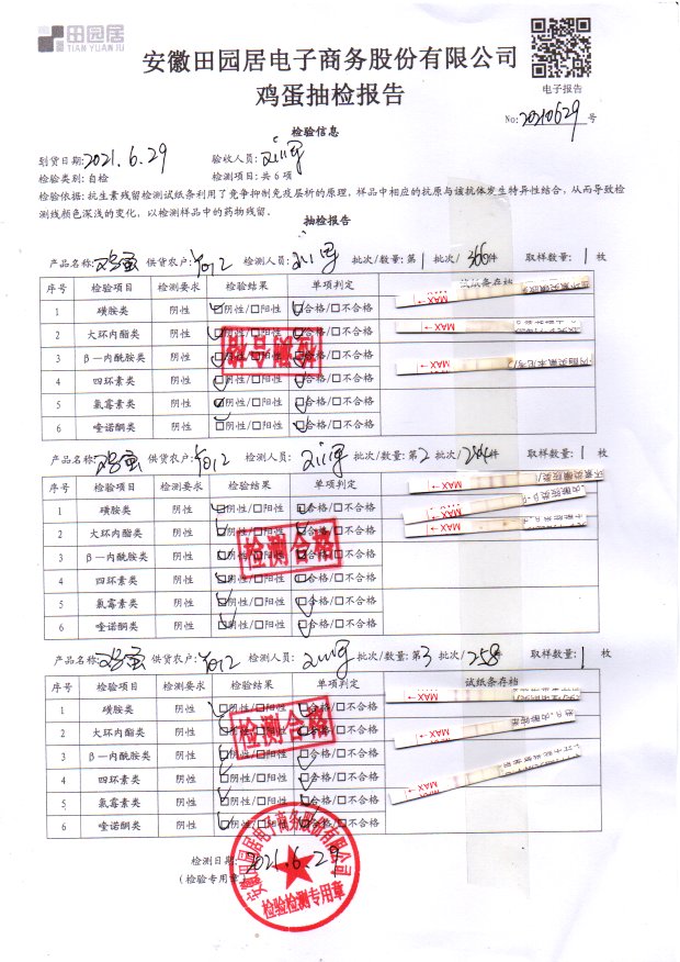 2021年6月30号鲜鸡蛋检测报告
