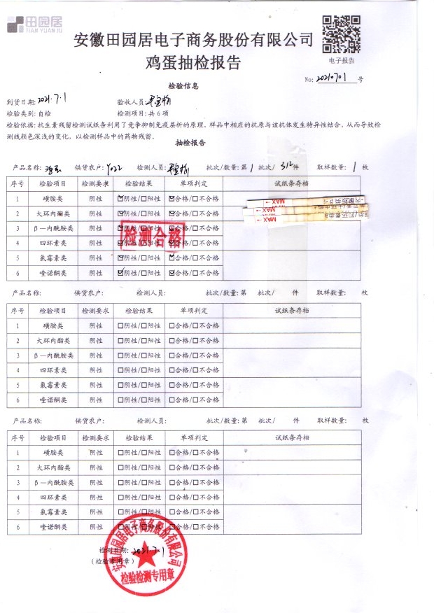 2021年7月1号鲜鸡蛋检测报告