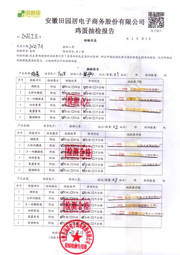 2021年7月11号鲜鸡蛋检测报告