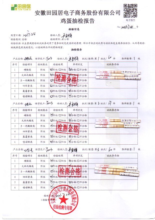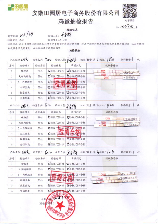 2021年7月24号鲜鸡蛋检测报告