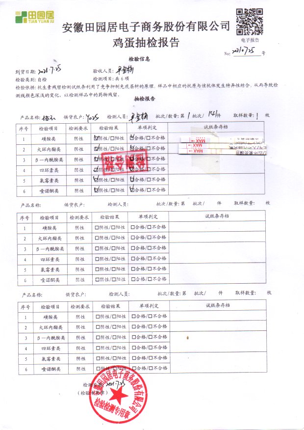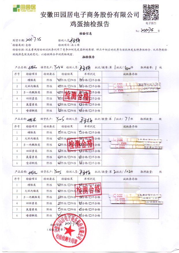2021年7月25号鲜鸡蛋检测报告