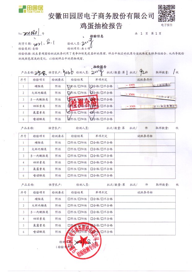2021年8月01号鲜鸡蛋检测报告