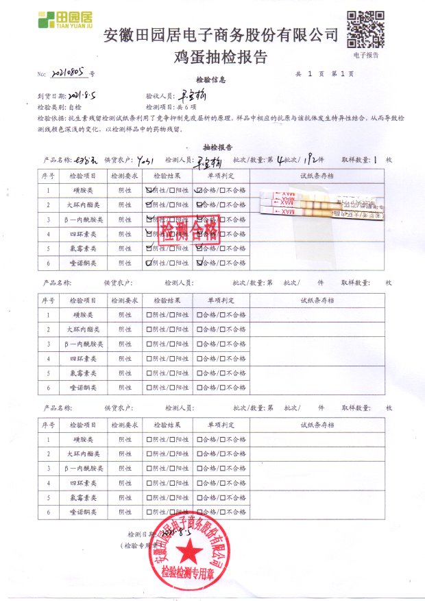 2021年8月04号鲜鸡蛋检测报告