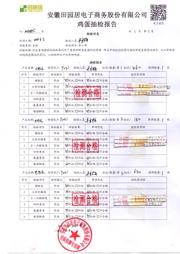 2021年8月06号鲜鸡蛋检测报告