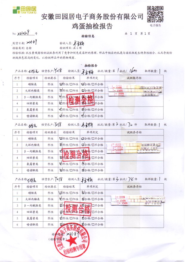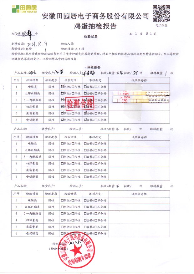 2021年8月10号鲜鸡蛋检测报告
