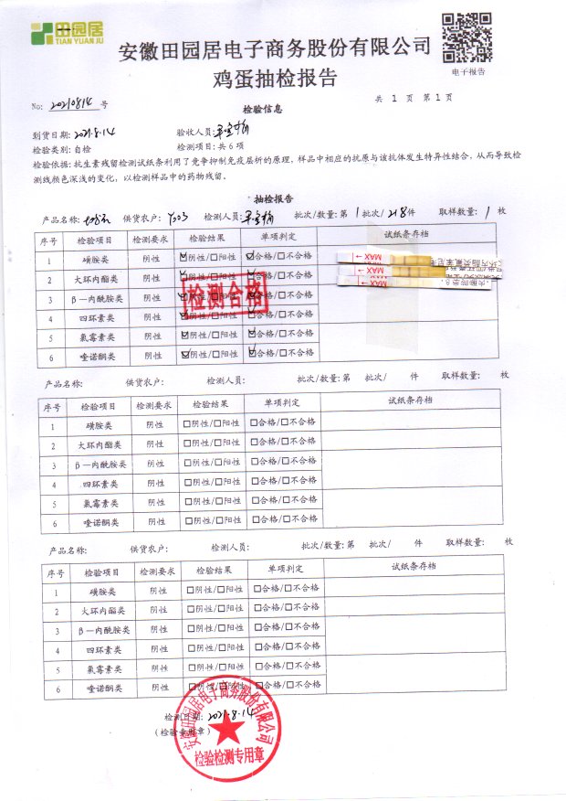 2021年8月16号鲜鸡蛋检测报告