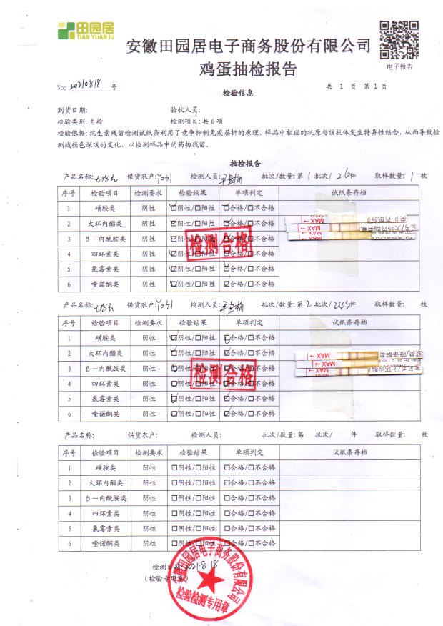 2021年8月18号鲜鸡蛋检测报告