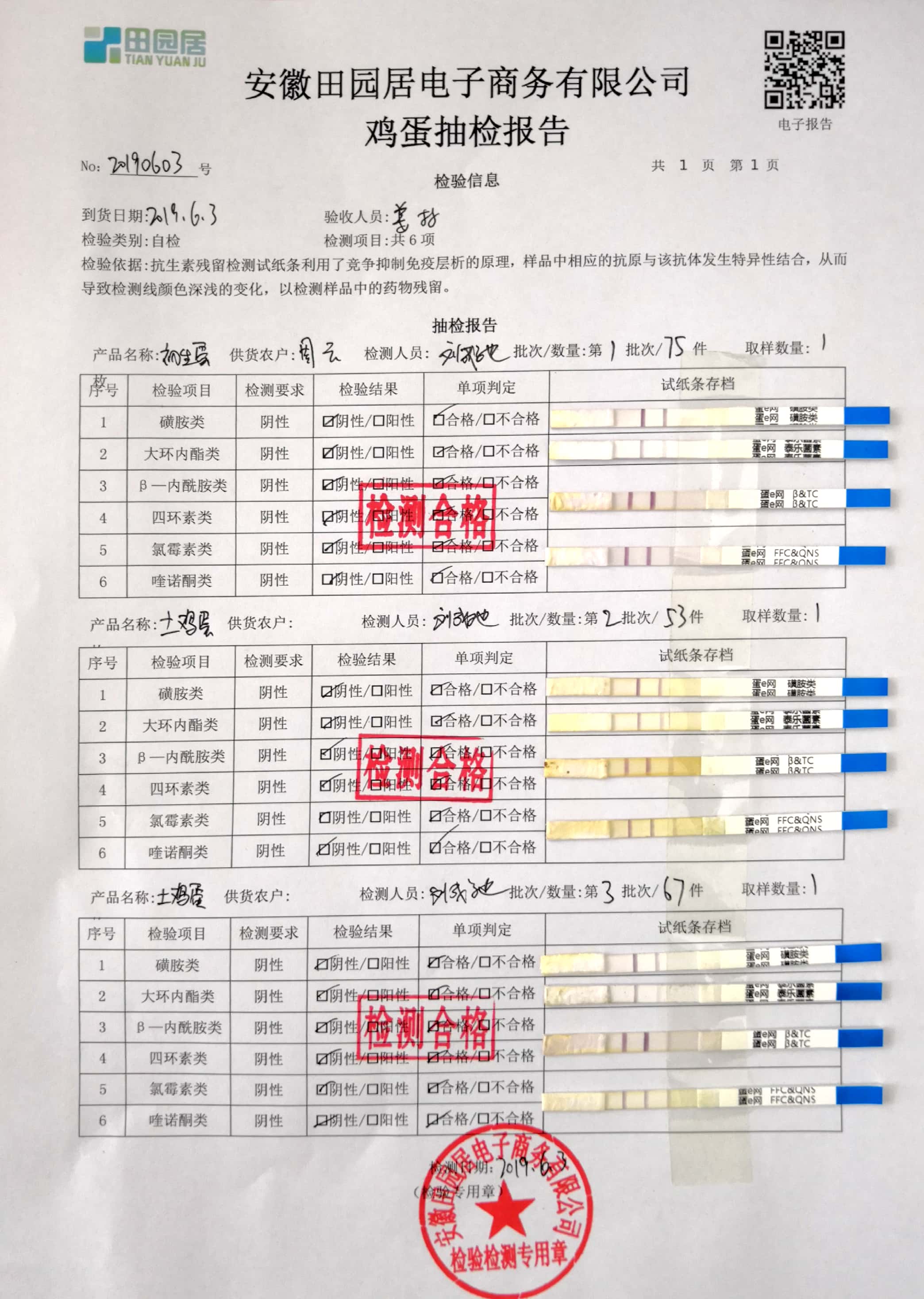 2019年6月3日鸡蛋自检报告