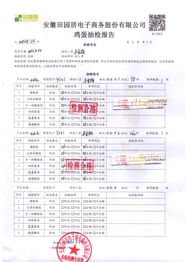 2021年8月24号鲜鸡蛋检测报告