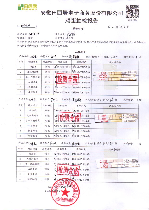 2021年8月28号鲜鸡蛋检测报告