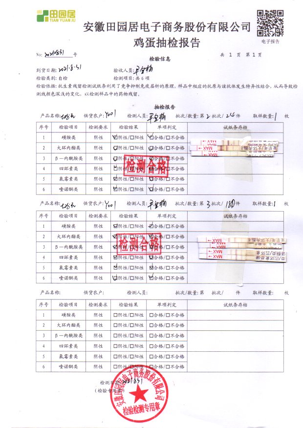 2021年8月31号鲜鸡蛋检测报告