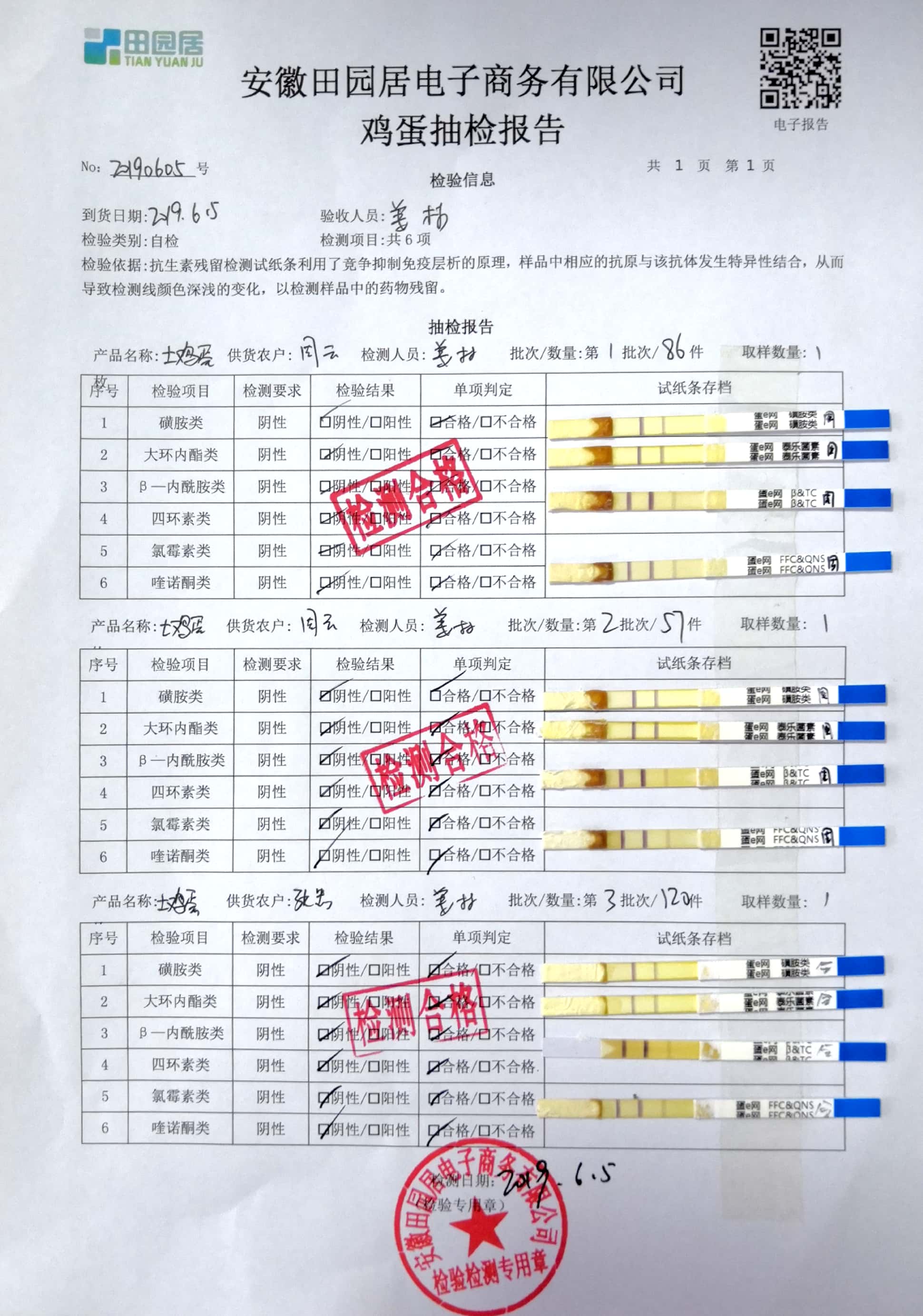2019年6月5日鸡蛋自检报告