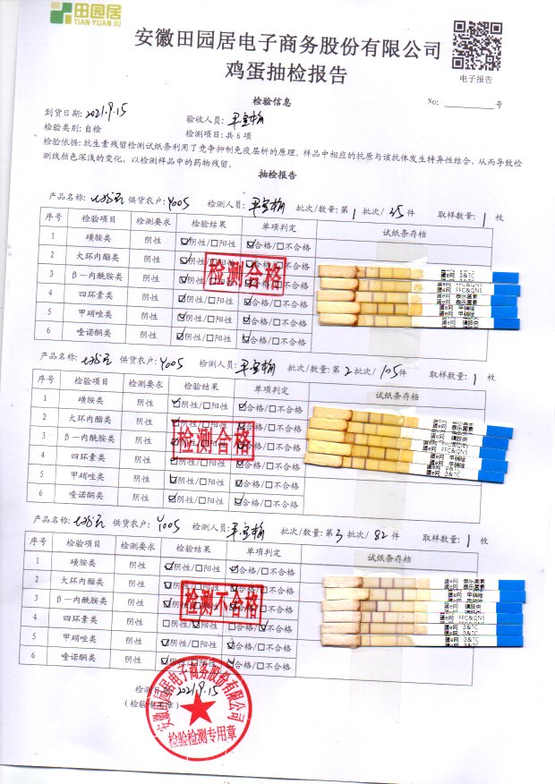 2021年9月15号鲜鸡蛋检测报告