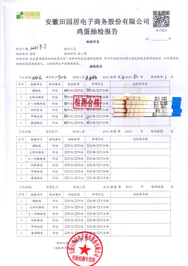2021年9月17号鲜鸡蛋检测报告
