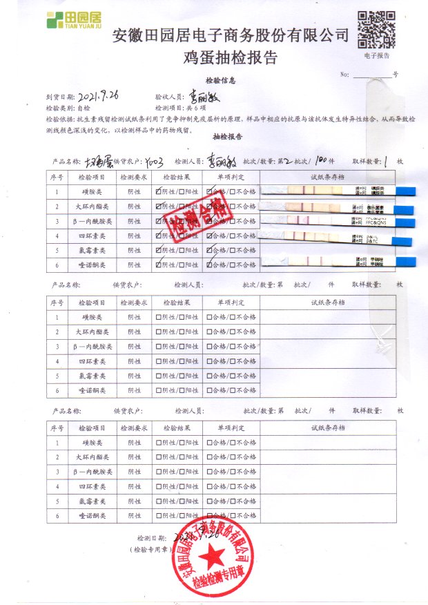 2021年9月26号鲜鸡蛋检测报告