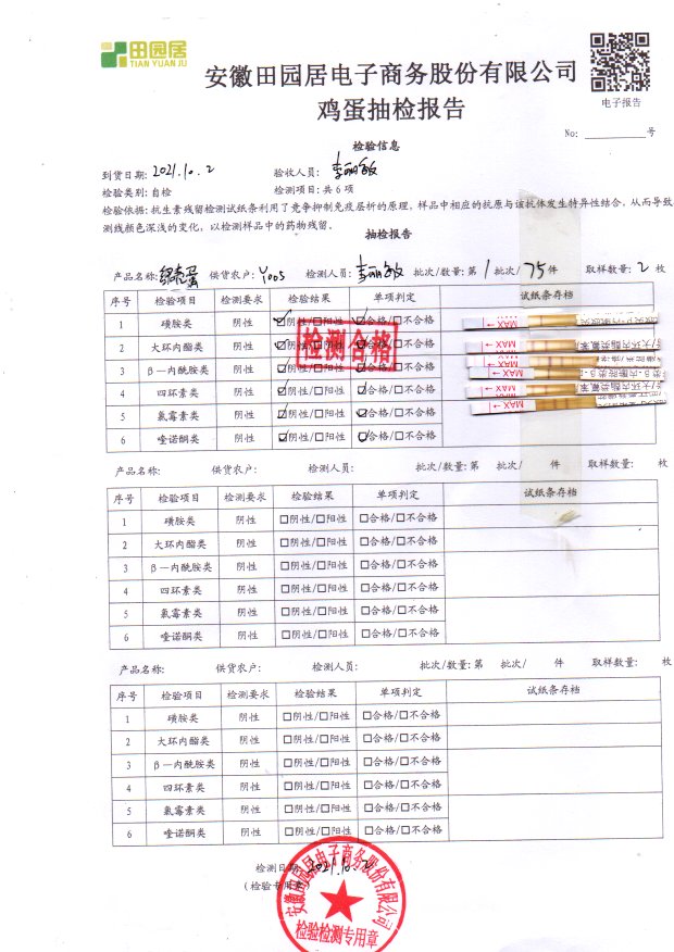 2021年10月3号鲜鸡蛋检测报告