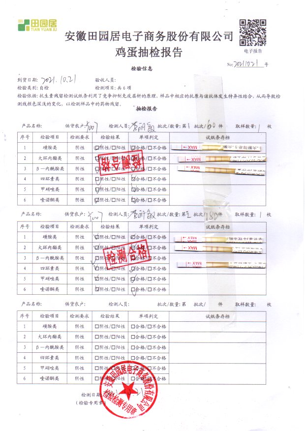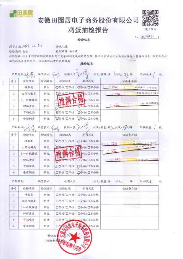 2021年10月21号鲜鸡蛋检测报告