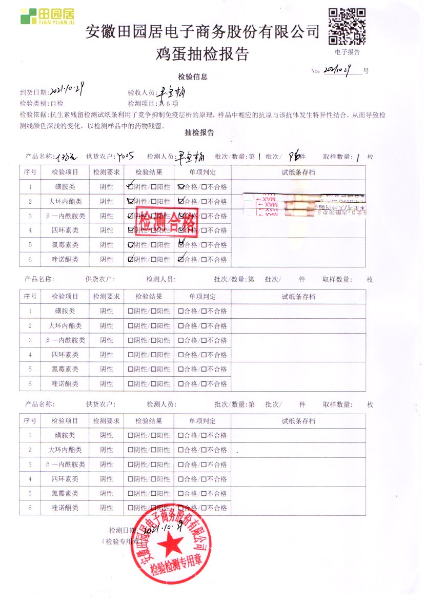 2021年10月29号鲜鸡蛋检测报告