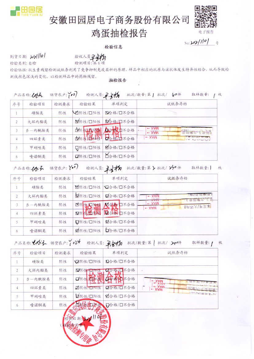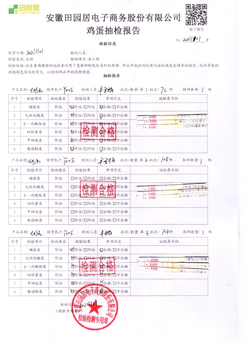 2021年11月01号鲜鸡蛋检测报告
