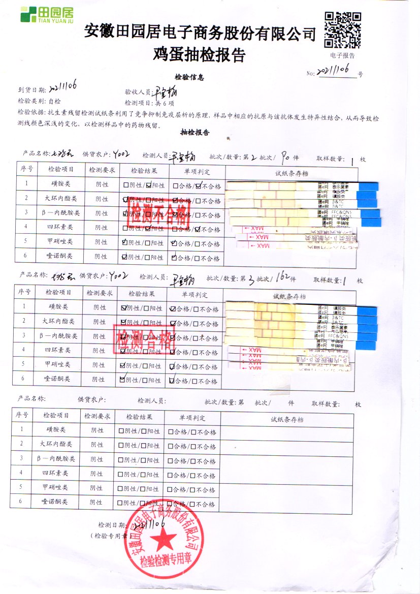 2021年11月06号鲜鸡蛋检测报告