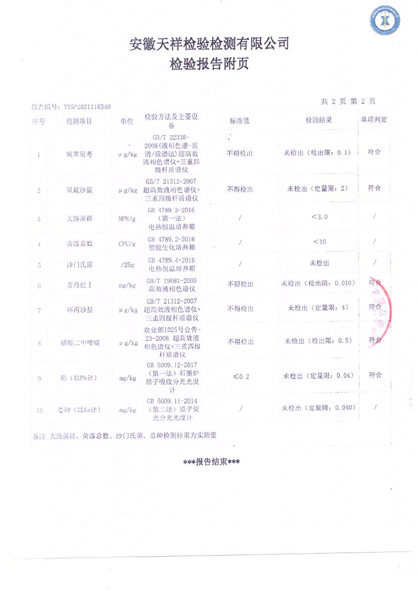 2021年11月生态石斛鸭检测报告