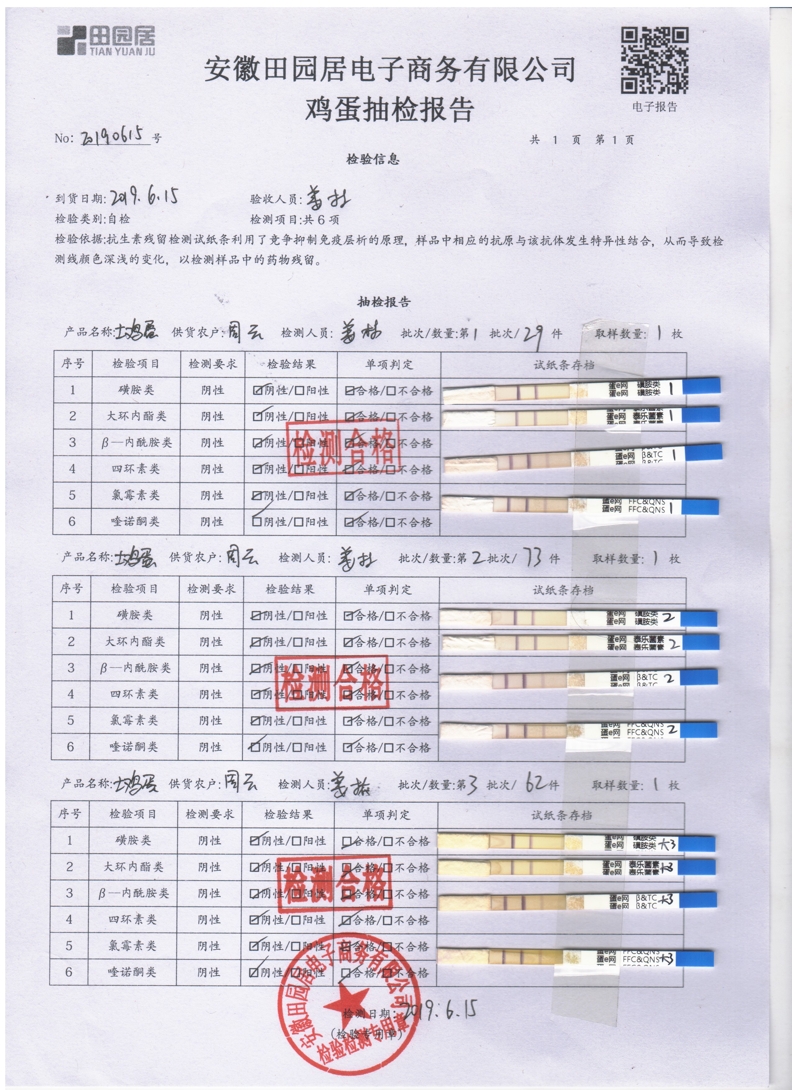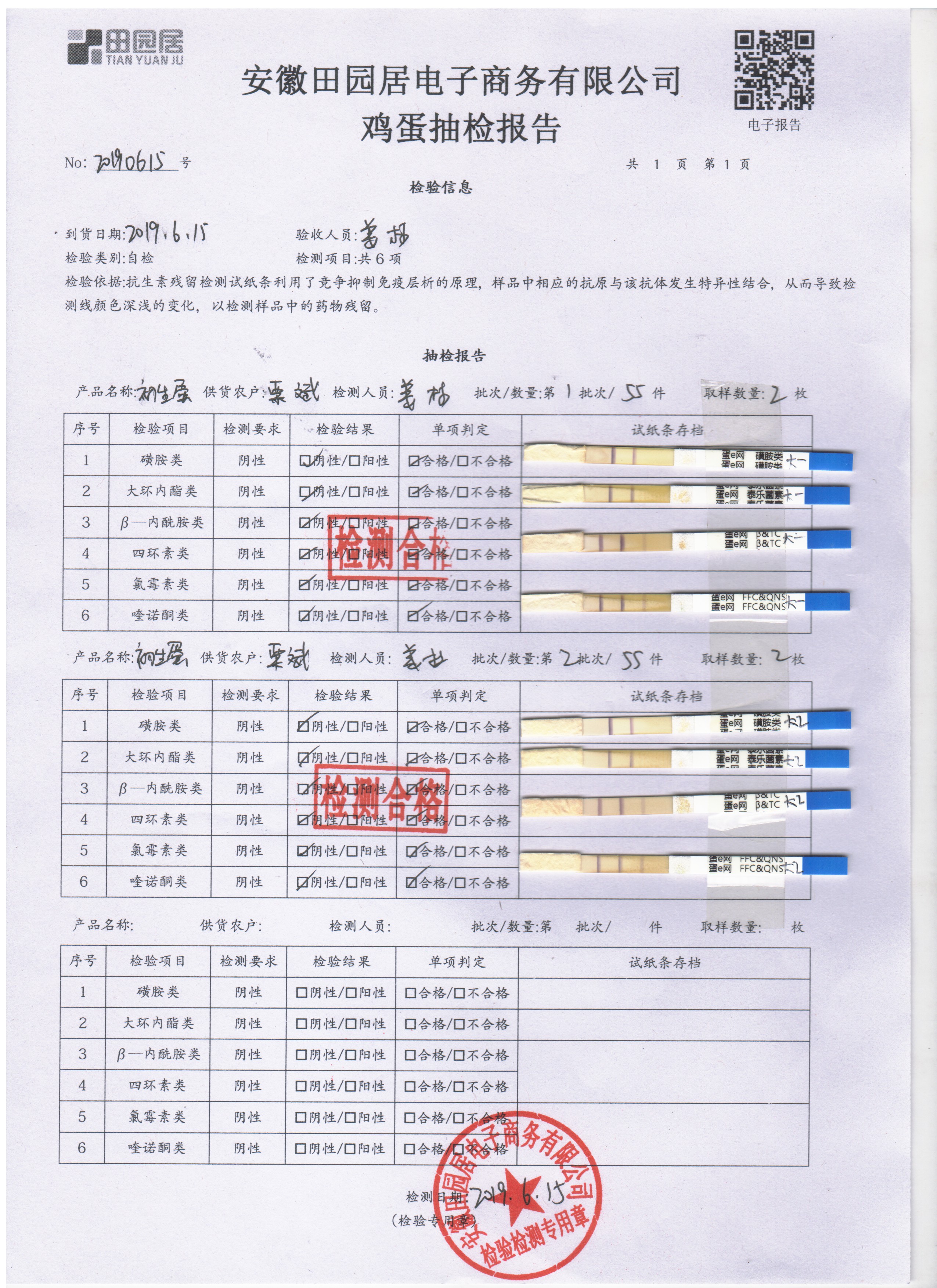 2019年6月15日鸡蛋自检报告