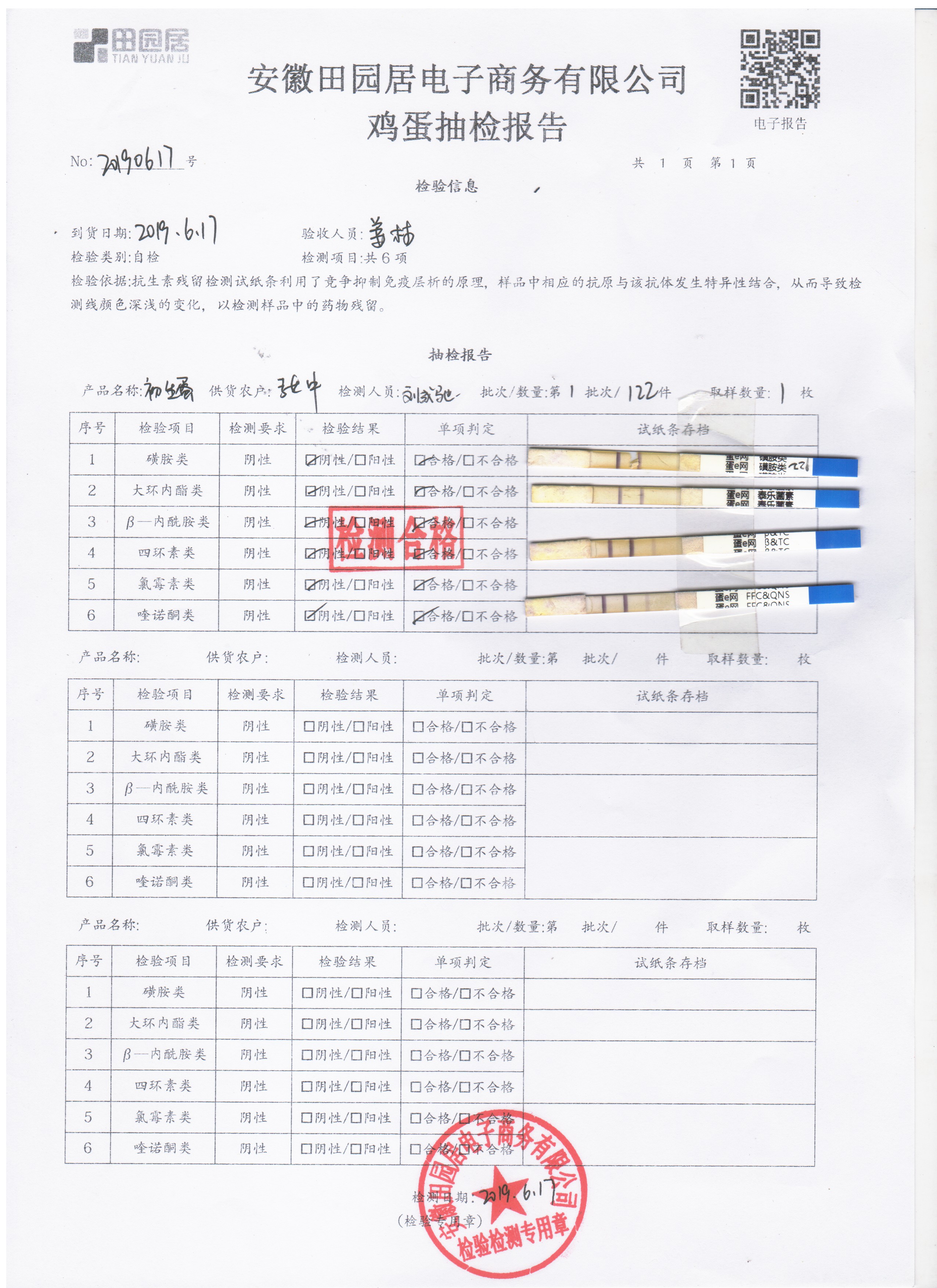 2019年6月17日鸡蛋自检报告