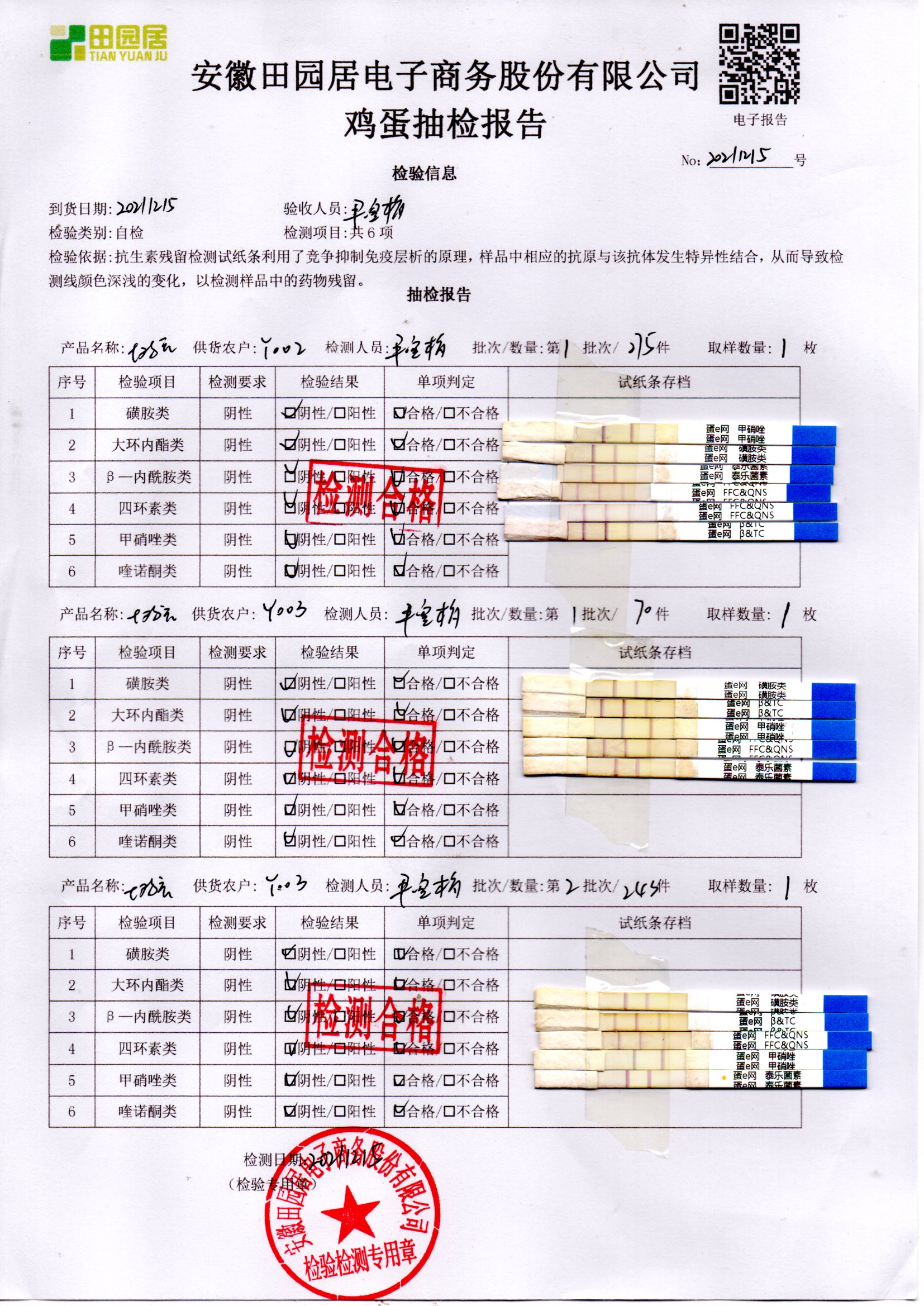 2021年12月15号鲜鸡蛋检测报告