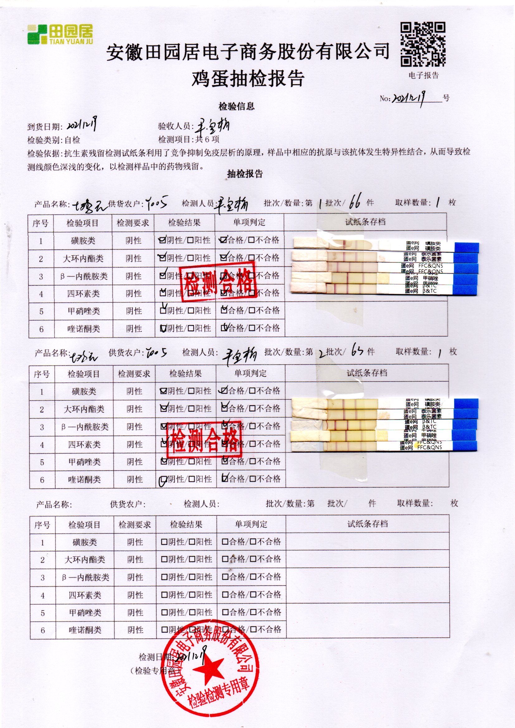 2021年12月19号鲜鸡蛋检测报告