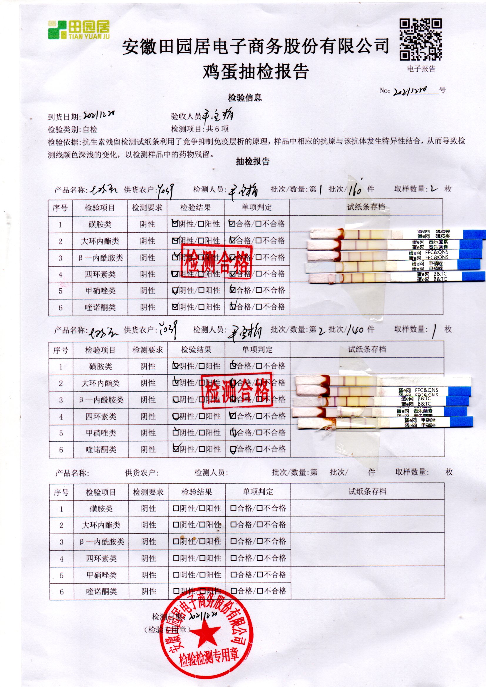 2021年12月20号鲜鸡蛋检测报告
