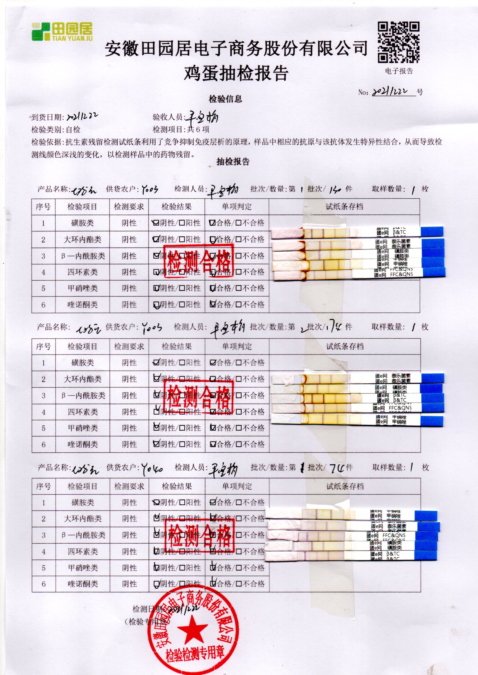 2021年12月22号鲜鸡蛋检测报告