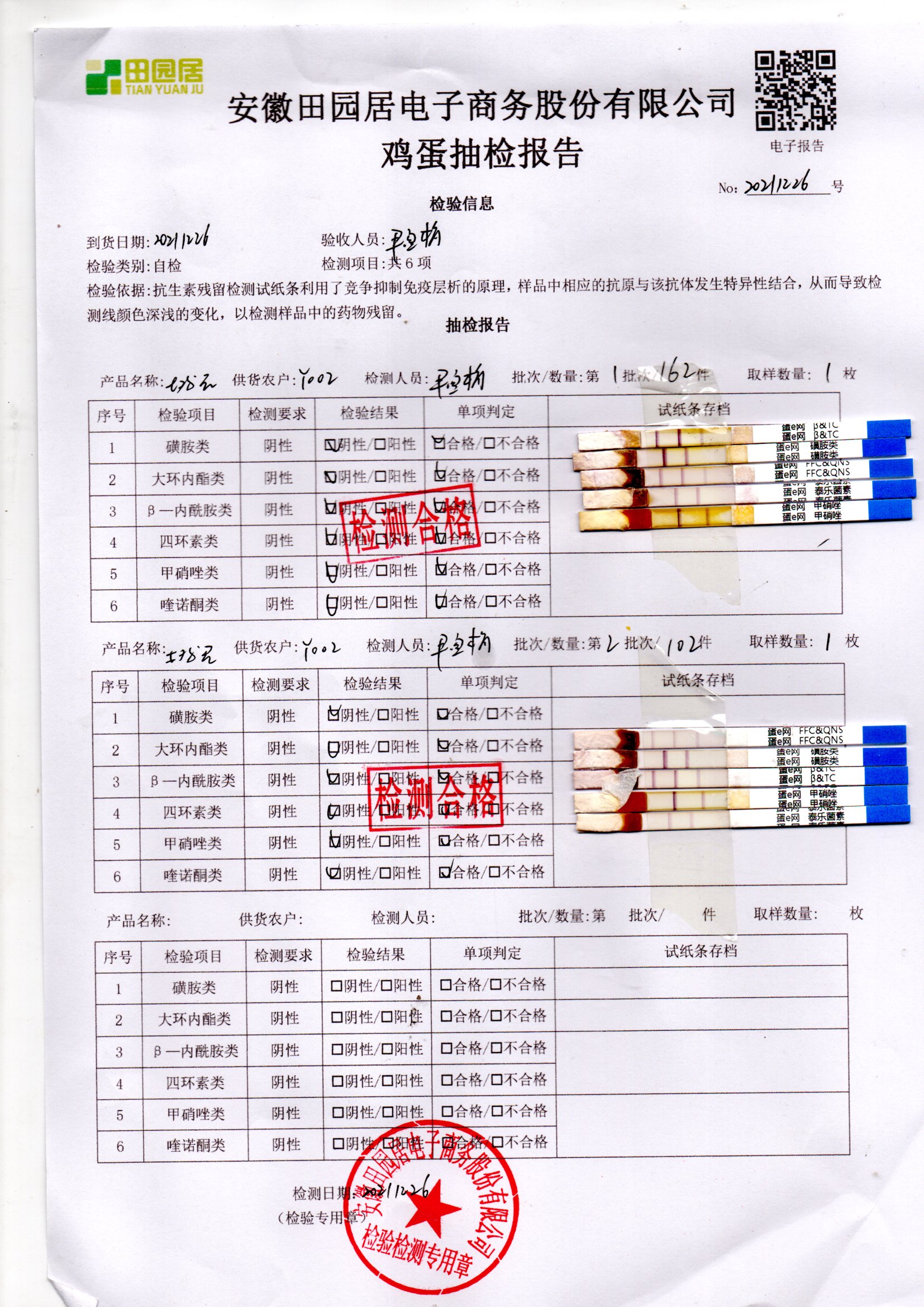 2021年12月26号鲜鸡蛋检测报告