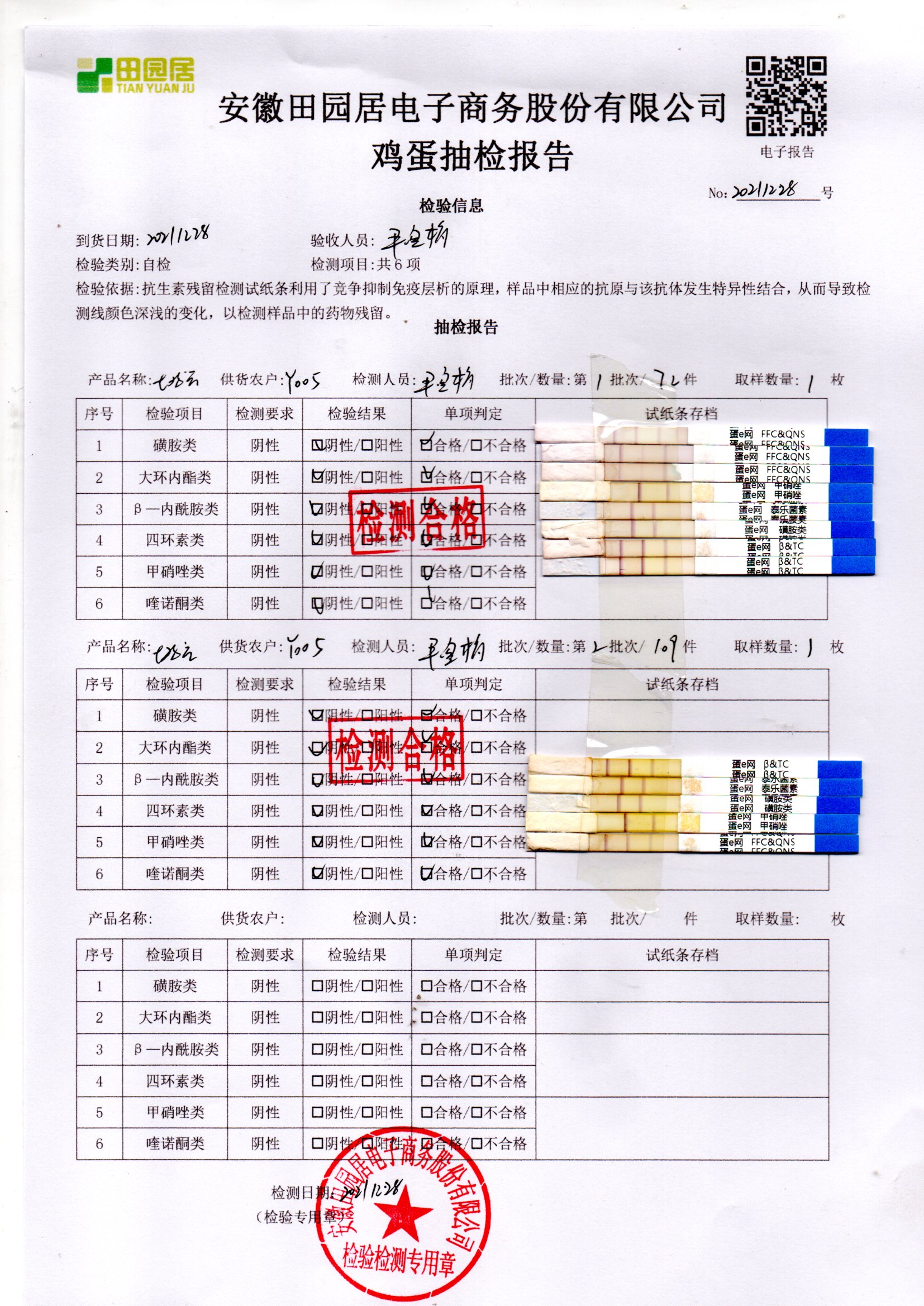 2021年12月28号鲜鸡蛋检测报告